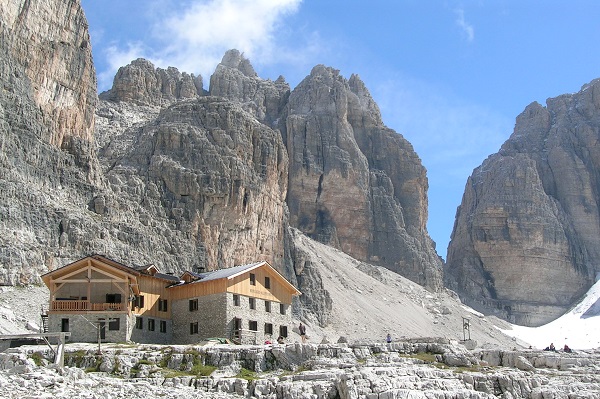 Due rifugi alpini realizzati negli ’50-’60 da famiglie di alpinisti. Noi preferiamo la scelta fatta dalla famiglia Alimonta. E grazie anche a loro se le “nostre” Dolomiti di Brenta sono raggiungibili solo a piedi, se si esclude il Grostè, posto però in posizione marginale.