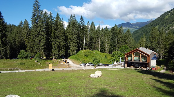 Dopodiché, nelle radure a destra del rifugio Vallesinella, che presentavano una conformazione giÁ pianeggiante, sono state create due zone che possono accogliere 140 auto completamente mimetizzate dalle piante. Alcuni posti auto riservati ai Regolieri sono collocati in un”™area esterna tra il parcheggio e la malga. Per perfezionare l”™opera saranno necessarie delle finiture che saranno apportate in autunno.