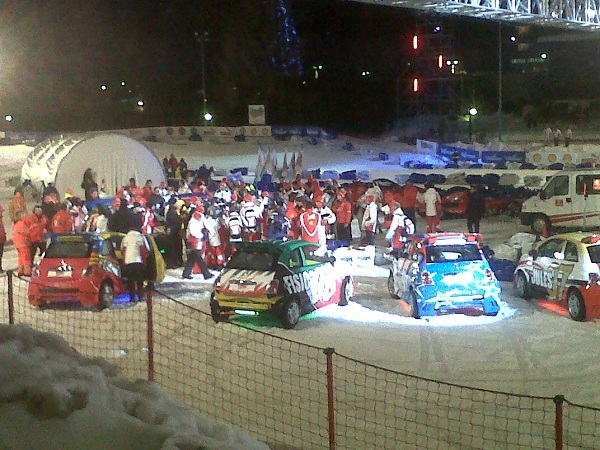 Oggi pomeriggio grande è stato l’entusiasmo del pubblico quando alla partenza delle gare sul laghetto ghiacciato (due le prove: una con i kart e una con le FIAT 500) si è presentato anche Valentino Rossi. In pochi se lo aspettavano, visti i problemi alla spalla. Annunciati pochi giri per “fare un regalo” ai tifosi, il campione del MotoGp ha poi partecipato a tutte e due le competizioni in programma, entrambe vinte da Alonso.