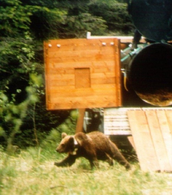 Rilascio dell”™orsa Kirka, nel maggio 1999 (foto Archivio Provincia Autonoma di Trento)
