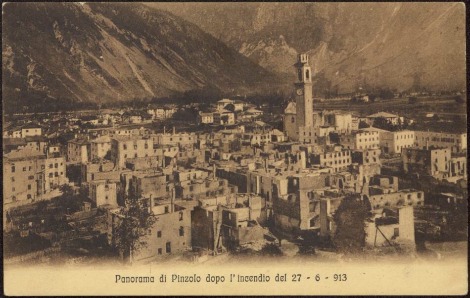 Leggendo ho appreso che nella notte del 27 giugno del 1913 a Pinzolo ci fu un grande incendio divampato con “fiamme paurose che si alzarono di dietro alla Cooperativa”, colpendo le case antiche che erano fra loro uniti tramite ballatoi di legno.