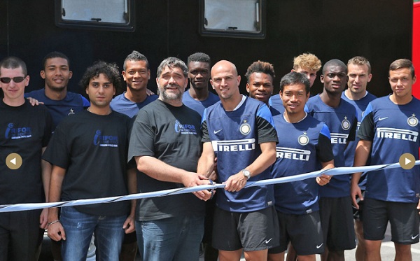 Nella tarda mattinata di oggi la Cooperativa Sociale IRIFOR, braccio operativo dell’Associazione Ciechi di Trento, ha incontrato l’Inter nell’hotel sede del ritiro di Pinzolo. Una folta delegazione di calciatori nerazzurri e il team manager Ivan Cordoba hanno inaugurato il ‘Il Sapore del Buio’ un van attrezzato di oltre 9 metri di lunghezza, dove i non vedenti, membri dell’Associazione, servono da bere in un ambiente completamente buio. Dopo il rituale taglio del nastro, rigorosamente nerazzurro, i calciatori sono entrati nel bar, in un ambiente completamente privo di luce.