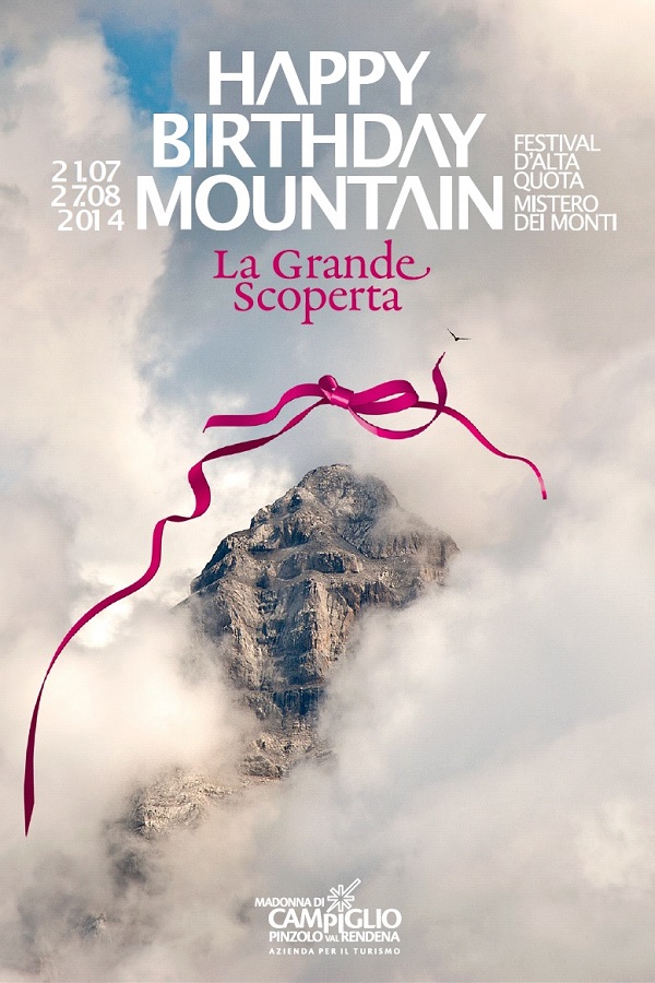 Per l’estate 2014 il festival incrocia una serie di anniversari importanti per la scoperta e l’esplorazione della montagna, e li festeggia con un titolo significativo: Happy Birthday Mountain è infatti il tema che riecheggia nelle gole verticali e nell’aria fresca dei monti dell’estate campigliana. Volutamente in inglese perché furono i britannici a scoprire 150 anni fa questo ultimo e sconosciuto gruppo di montagne, ora patrimonio dell’umanità.