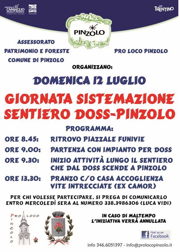 • 12 luglio: Giornata sistemazione sentiero Doss-Pinzolo