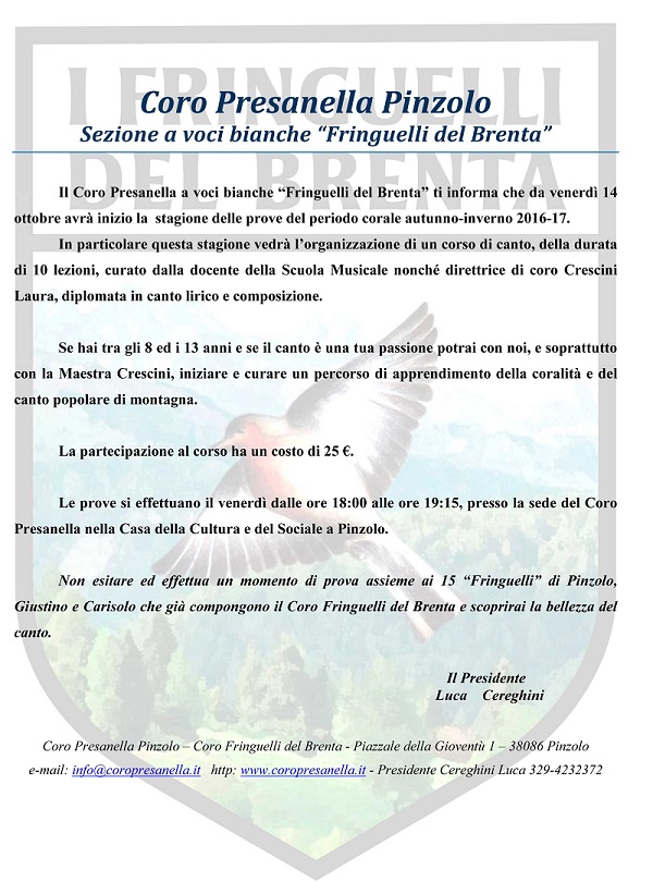 • 14 ottobre: Inizio prove dei ‘Fringuelli del Brenta’