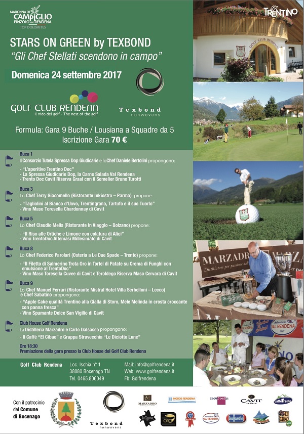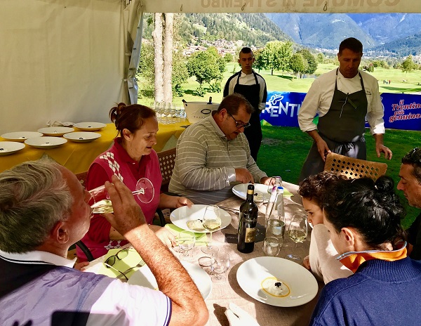 Sul percorso del bellissimo golf rendenese, sotto la sapiente regia del vulcanico Daniele Bertolini, sono scesi in campo, dopo la bella esperienza della passata edizione, quattro eccellenze della ristorazione, chiamati ad esprimere il proprio talento e a proporre ai partecipanti le loro creazioni valorizzando i prodotti del territorio delle Giudicarie e Val Rendena.