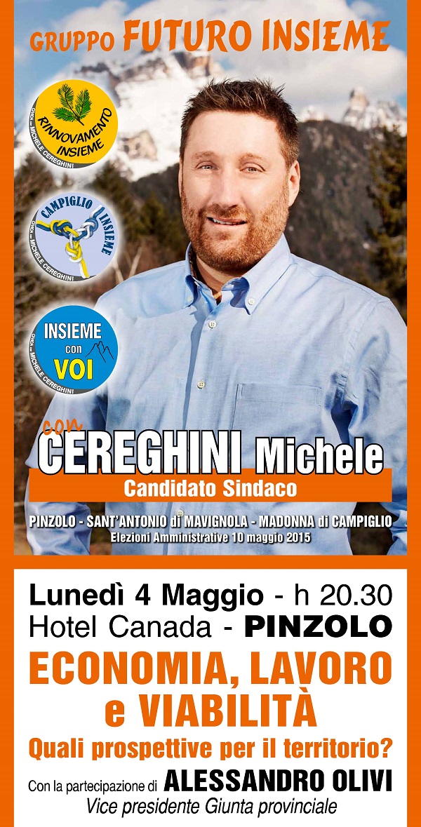 4 maggio, Pinzolo: Economia, lavoro e viabilità con Alessandro Olivi