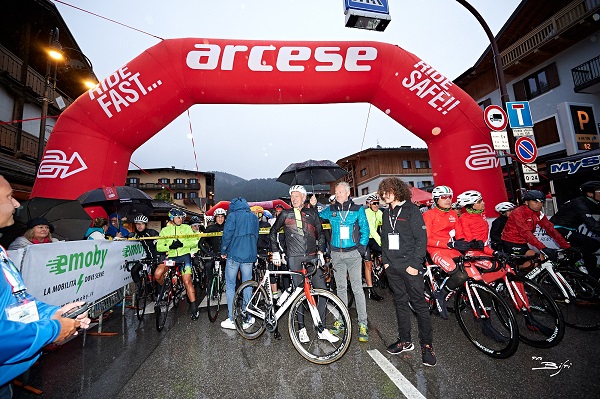 MADONNA DI CAMPIGLIO – È stata veramente una “Top Dolomites” per eroi quella svoltasi oggi a Madonna di Campiglio, accompagnata da pioggia battente, un vento freddo proveniente da nord e, ad una certo punto, anche neve. Protagonisti 600 eroi ed eroine che, sui 1.000 iscritti alla vigilia, si sono presentati alla linea di partenza in Viale Dolomiti di Brenta. Il via è stato dato alle 7.00 del mattino, anticipando l’orario della prima edizione 2018, anche per non impattare eccessivamente sulla normale circolazione automobilistica. Anticipata l’ora, abbreviato l’itinerario. Considerate le avverse condizioni meteorologiche, il Comitato organizzatore presieduto da Giovanni Danieli ha infatti preferito rimodulare il percorso competitivo, lungo 135 chilometri con passaggio a Riva del Garda, declinandolo sui 97 chilometri del tracciato “classico” con arrivo a Comano Terme via Passo del Durone per poi girare e riprendere la strada verso Madonna di Campiglio via Stenico. La “Granfondo” si è trasformata in una “Mediofondo”, ma la sicurezza è stata garantita. Invariato, invece, il percorso “amatoriale” che ha coperto la distanza di 43 chilometri con partenza sempre a Campiglio, discesa a Spiazzo e poi “dietro front” con ritorno ai piedi del Brenta.