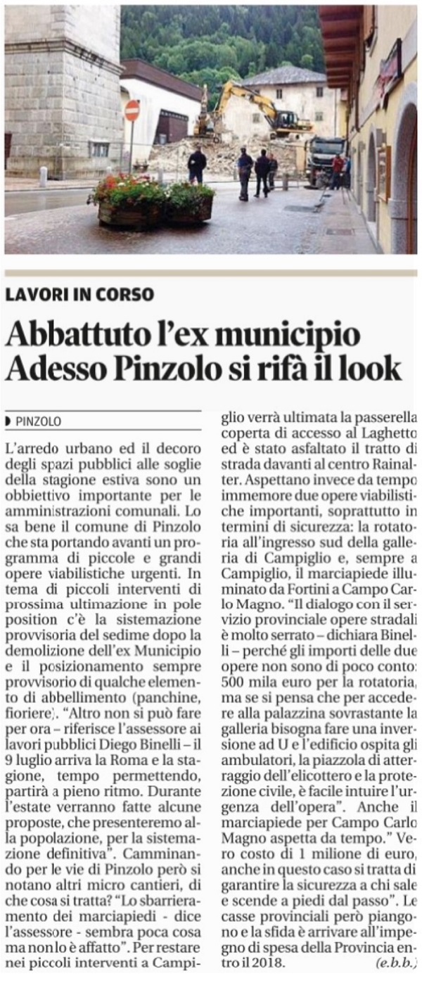 Abbattuto l’ex-municipio. Adesso Pinzolo si rifa’ il look