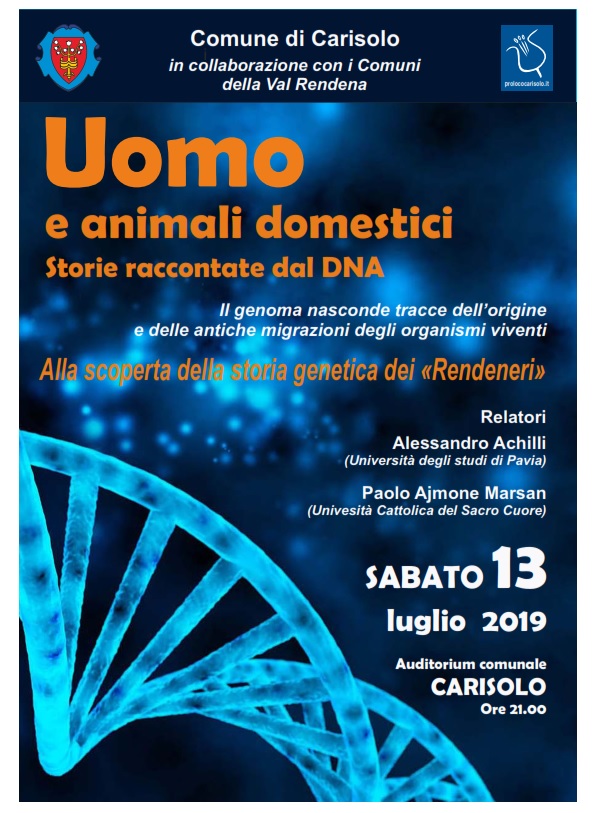 Relatori della serata, dal titolo “Uomo e animali domestici: storie raccontate dal DNA”, saranno i due titolari della ricerca: Alessandro Achilli, docente dell’Università di Pavia, e Paolo Ajmone Marsan, docente dell’Università Cattolica di Piacenza.