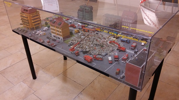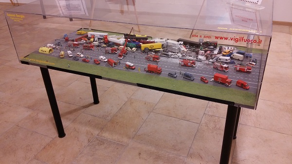 Verrà inaugurata oggi alle 14.00 la mostra "Diorami e caschi d’epoca dei VVF" preparata nella sala esposizioni al piano interrato del Paladolomiti di Pinzolo. L’allestimento è stato curato dal Corpo dei Vigili del Fuoco Volontari di Pinzolo per festeggiare i 120 anni di fondazione. Una mostra veramente interessante e ricca, che consiglio a tutti di visitare (fino a domenica). Ecco alcune foto scattate stamattina al termine dell’allestimento. Per chi non lo sapesse, il diorama è un’ambientazione in scala ridotta che ricrea scene di vario genere (spesso viene erroneamente chiamato plastico). Qui vengono riproposte scene di incendi, disastri, crolli, ecc.