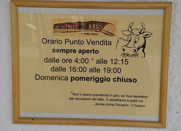 Il punto vendita del caseificio Maso Pan a Caderzone apre alle 4.00 del mattino.