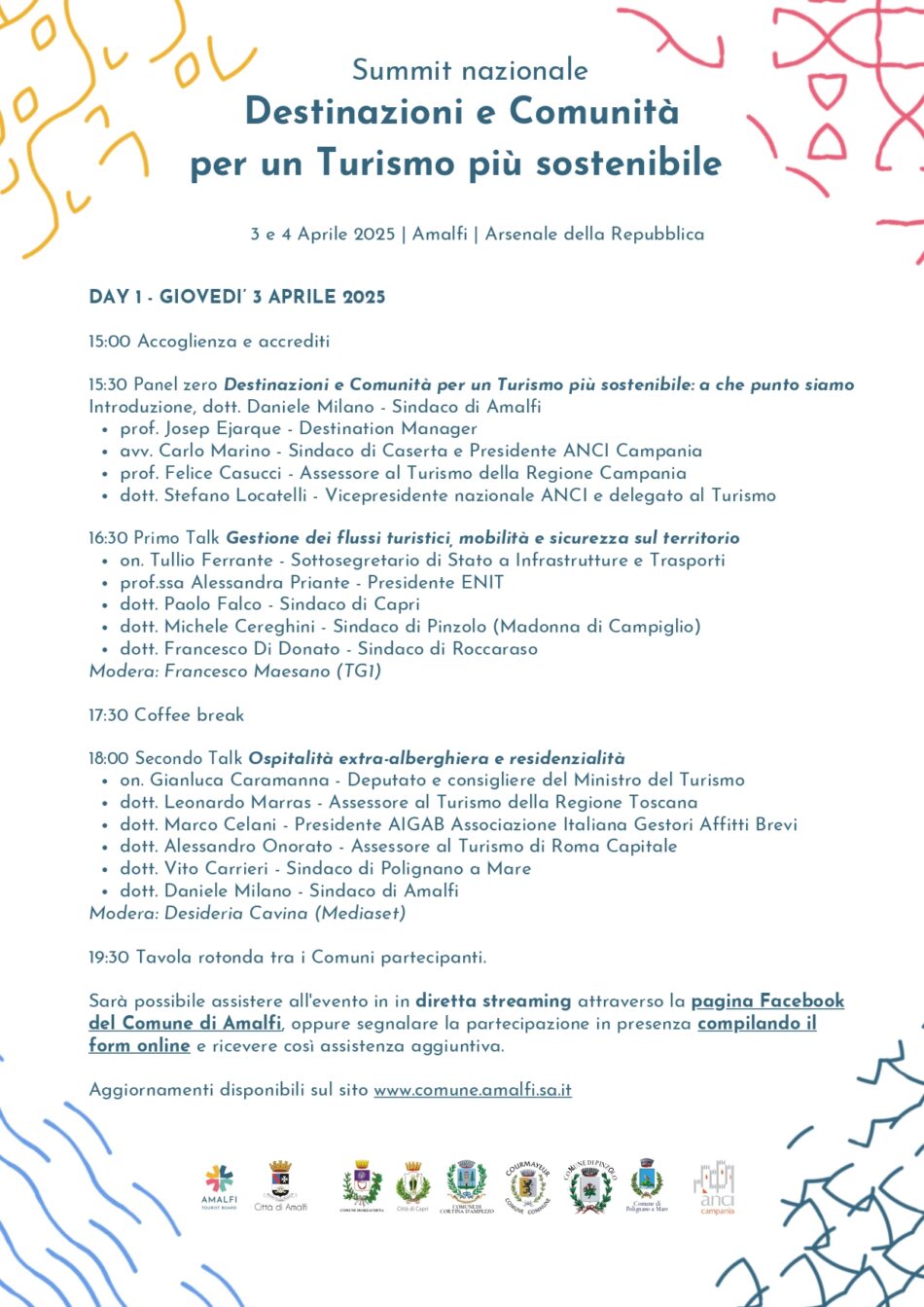 Amalfi 3-4 aprile 2025 Summit Nazionale “Destinazioni e Comunità per un turismo più sostenibile”