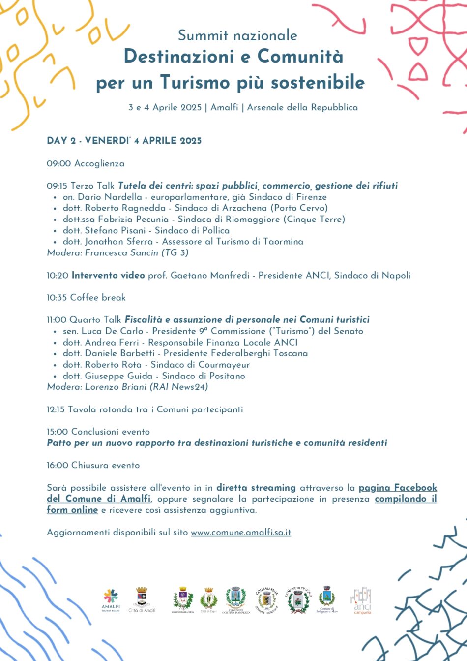 • Amalfi 3-4 aprile 2025 Summit Nazionale “Destinazioni e Comunità per un turismo più sostenibile”
