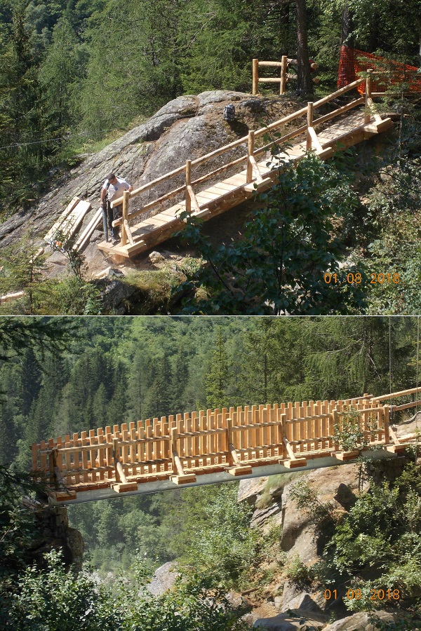 Il ripristino è dunque iniziato nell’estate 2017 con la ricostruzione della passerella di Bedole e si è concluso ad agosto 2018 con l’abbattimento e la ricostruzione della passerella del Pedruc.