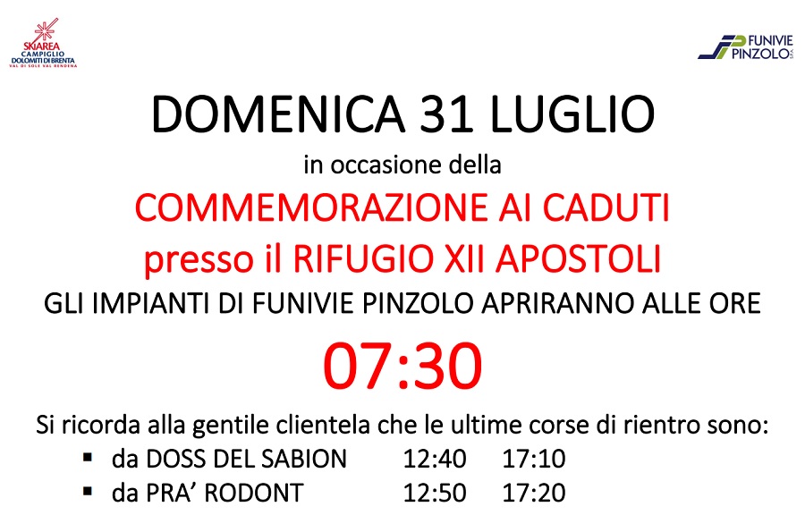 • Apertura straordinaria impianti Pinzolo – 31 luglio 2022