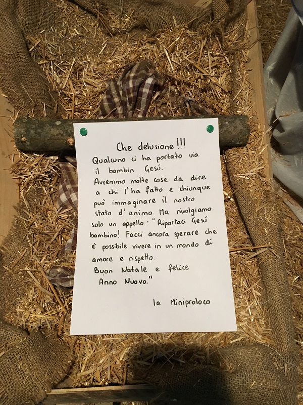 A Carisolo, nel presepe allestito dalla Pro loco in piazza due Maggio, è stato rubato il bambin Gesù.