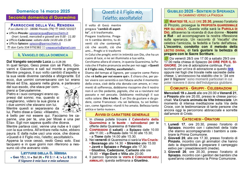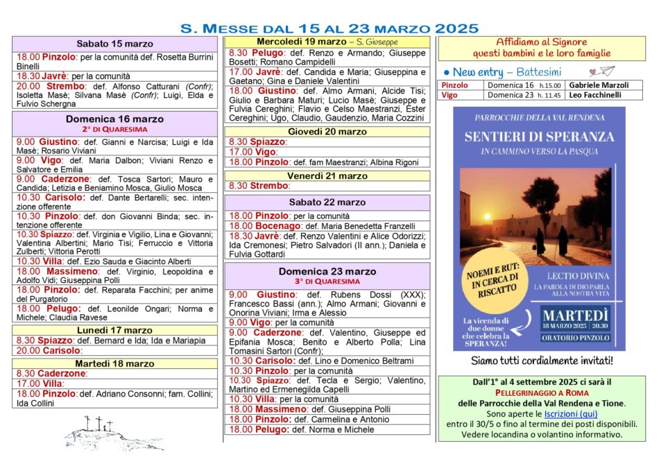 • Avvisi Parrocchiali: dal 16 al 23 marzo 2025