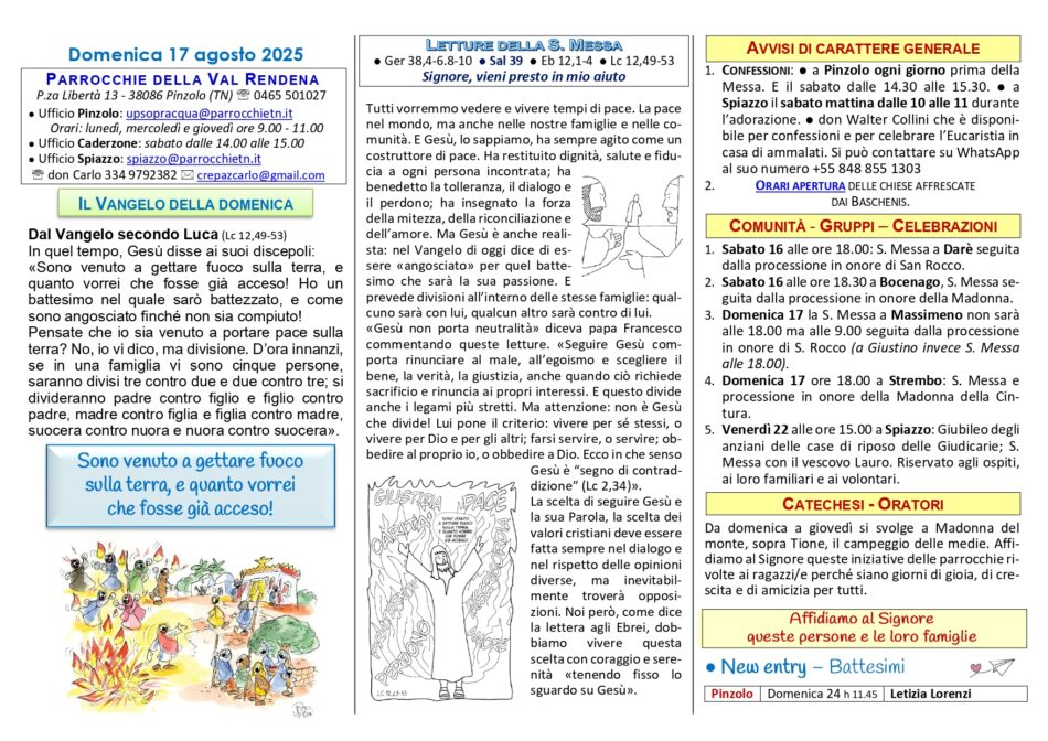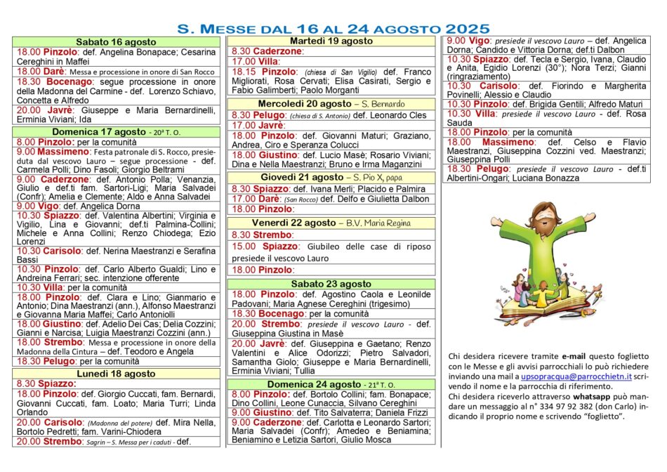 • Avvisi Parrocchiali: dal 17 al 24 agosto 2025