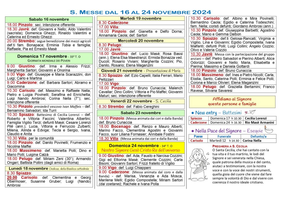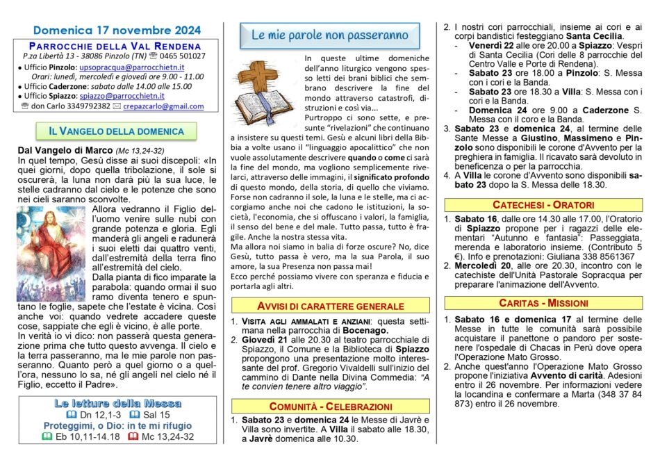 • Avvisi Parrocchiali – dal 17 al 24 novembre