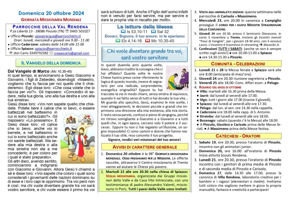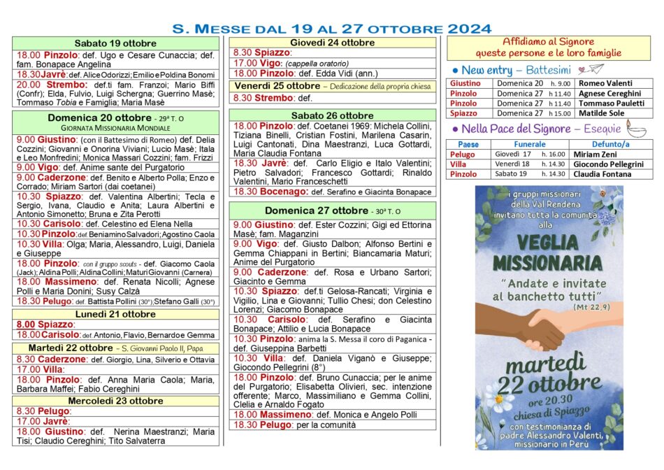 • Avvisi Parrocchiali – dal 20 al 27 ottobre