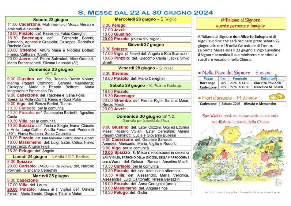 Avvisi Parrocchiali – dal 22 al 30 giugno 2024