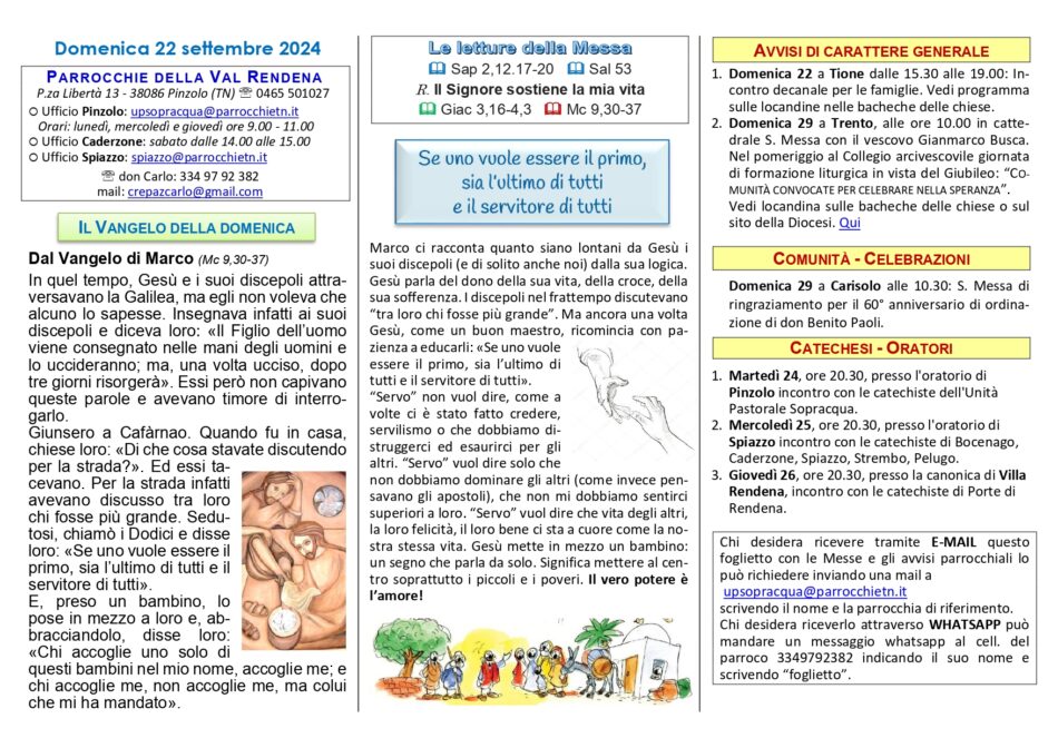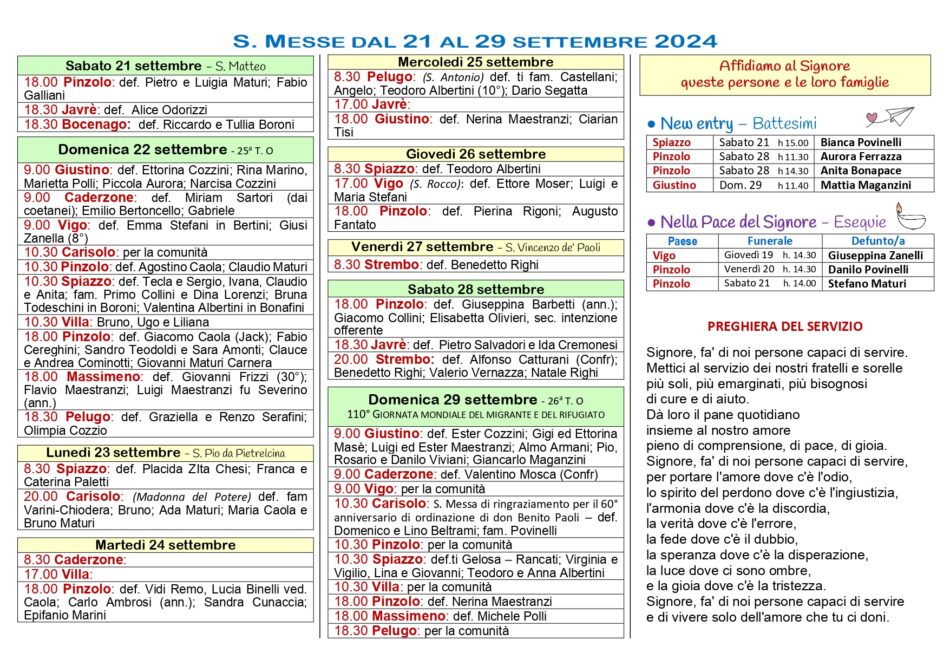Avvisi Parrocchiali – dal 22 settembre al 29 settembre