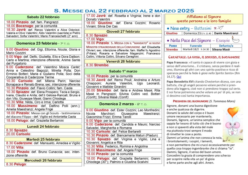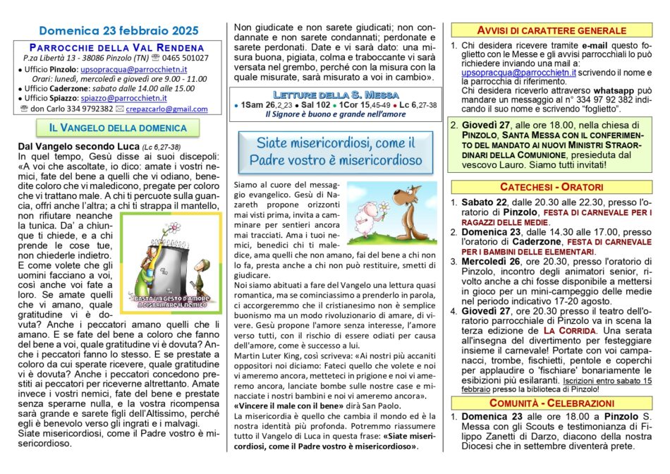 • Avvisi Parrocchiali: dal 23 febbraio al 2 marzo 2025