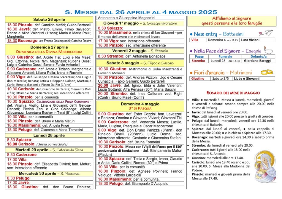 • Avvisi Parrocchiali: dal 27 aprile al 4 maggio 2025