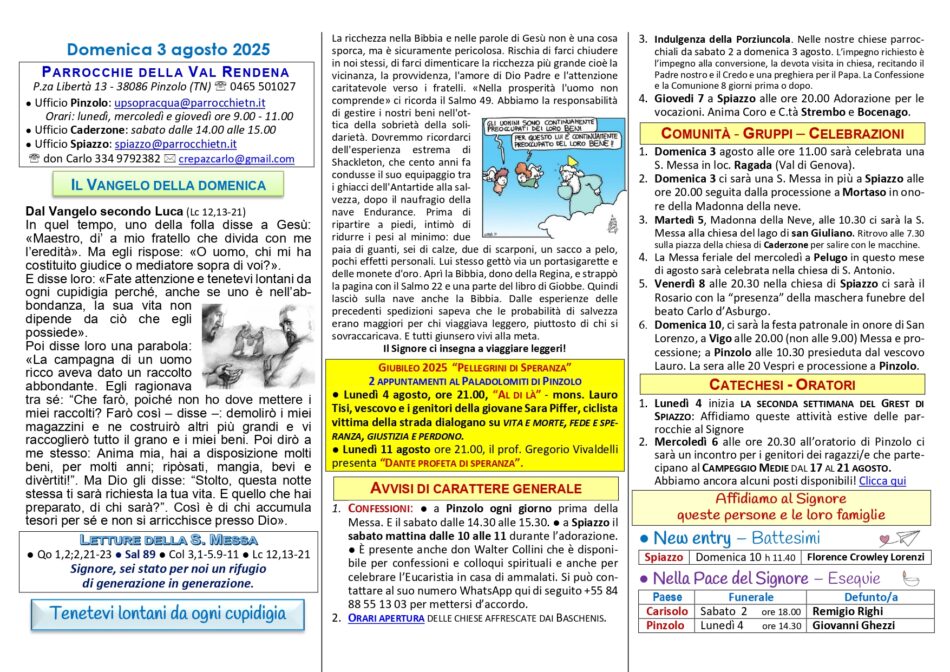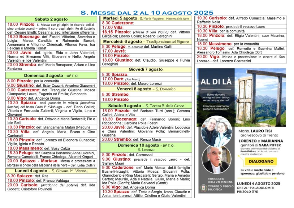 • Avvisi Parrocchiali: dal 3 al 10 agosto 2025