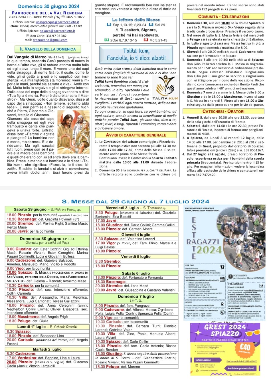 Avvisi Parrocchiali – dal 30 giugno al 7 luglio 2024