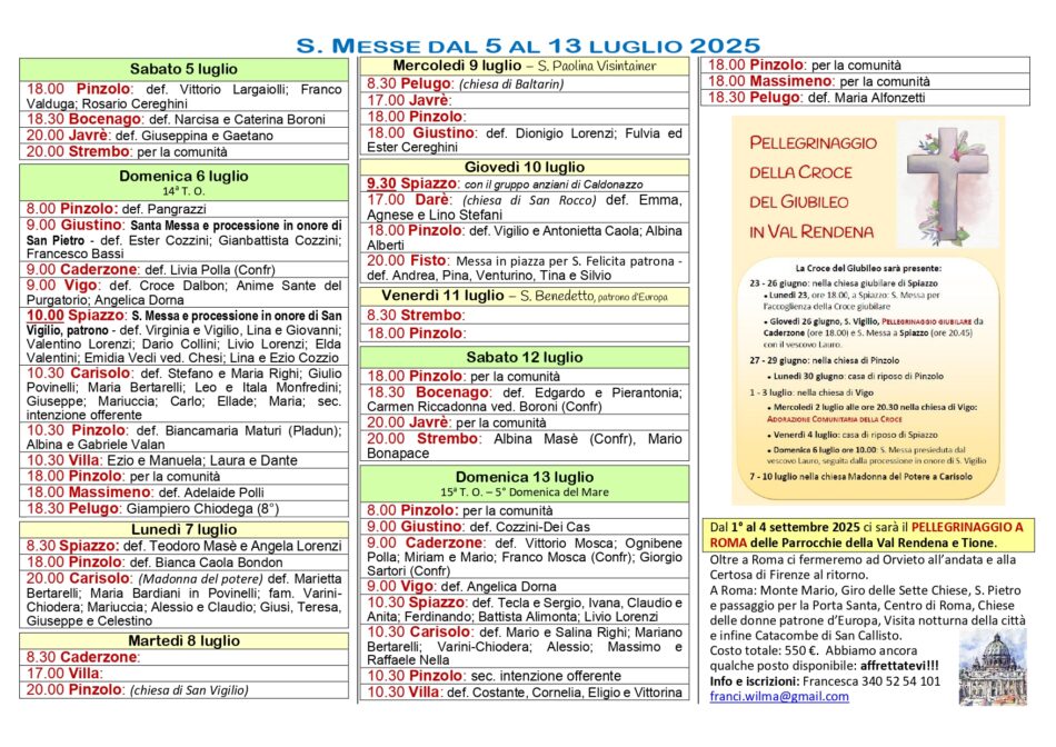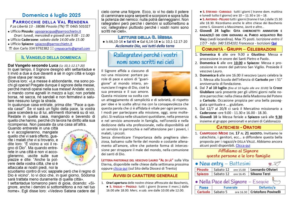 • Avvisi Parrocchiali: dal 6 al 13 luglio 2025