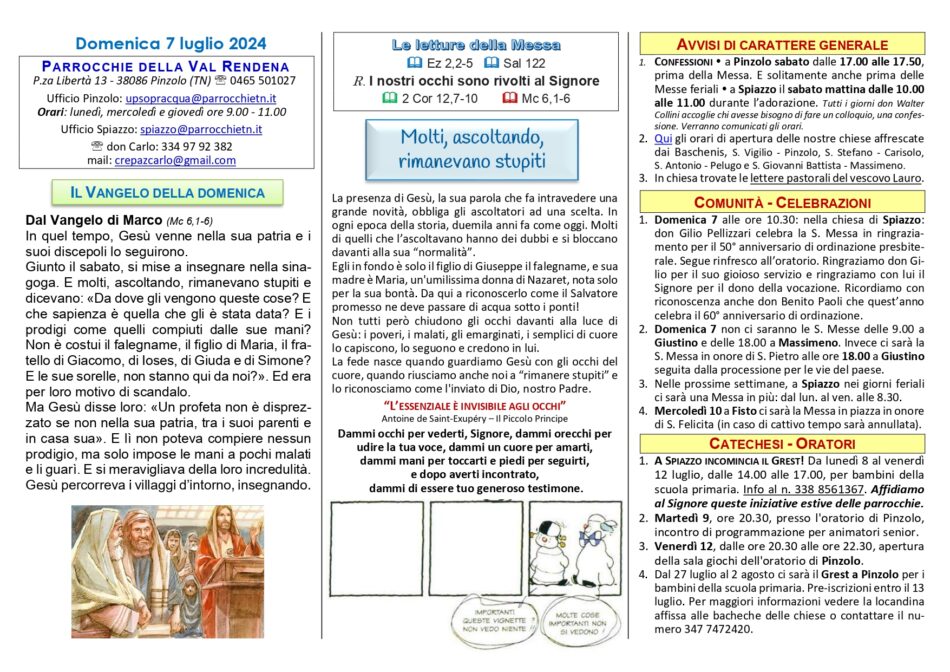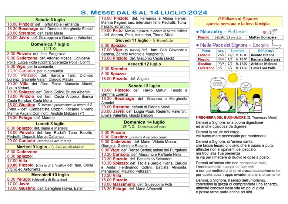 Avvisi Parrocchiali – dal 6 al 14 luglio 2024