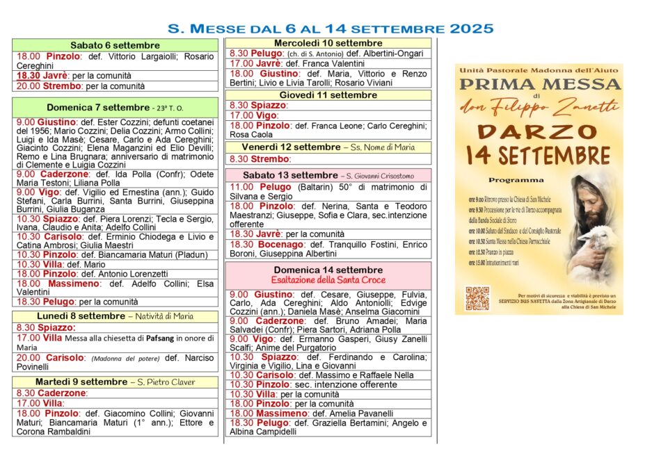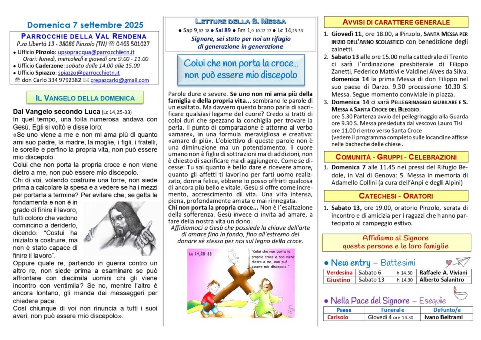 • Avvisi Parrocchiali: dal 7 al 14 settembre 2025