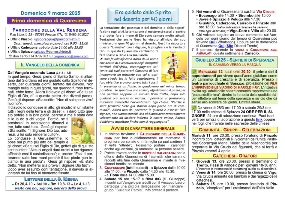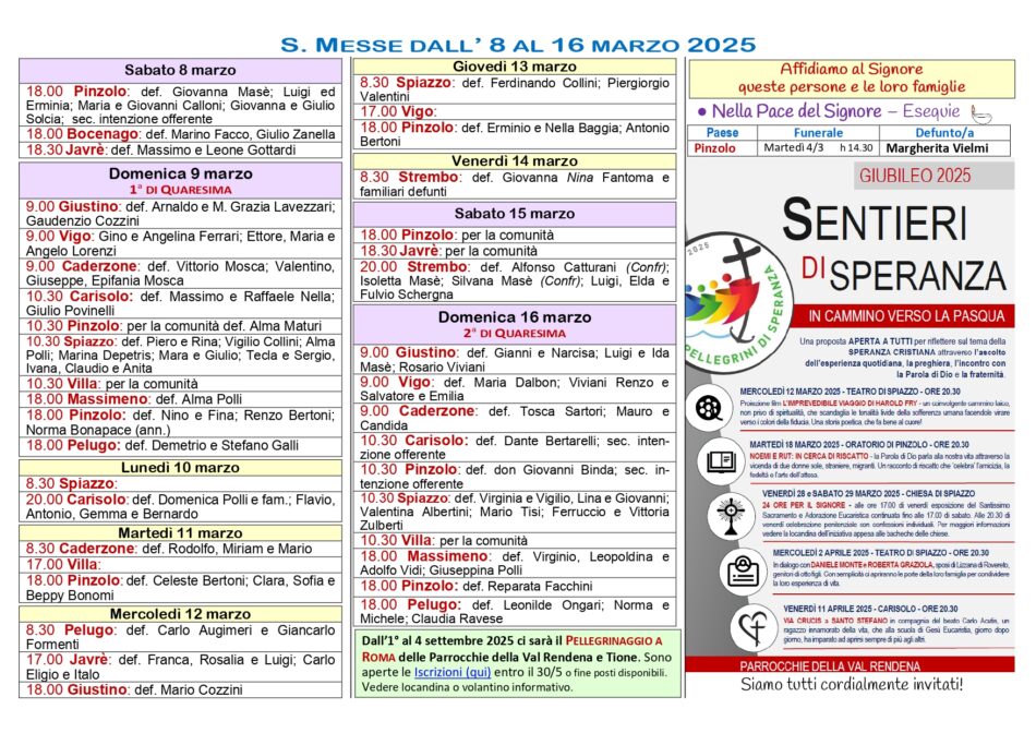 • Avvisi Parrocchiali: dal 9 al 16 marzo