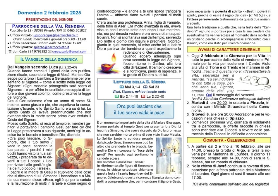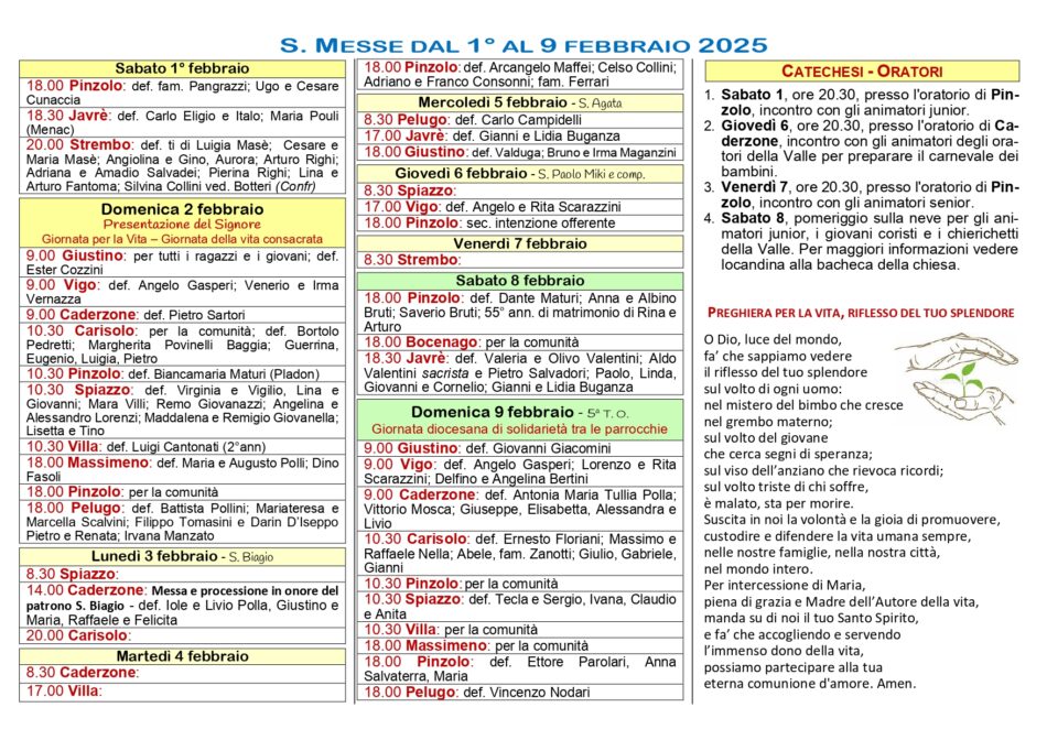 • Avvisi Parrocchiali: dall’1 al 9 febbraio 2025