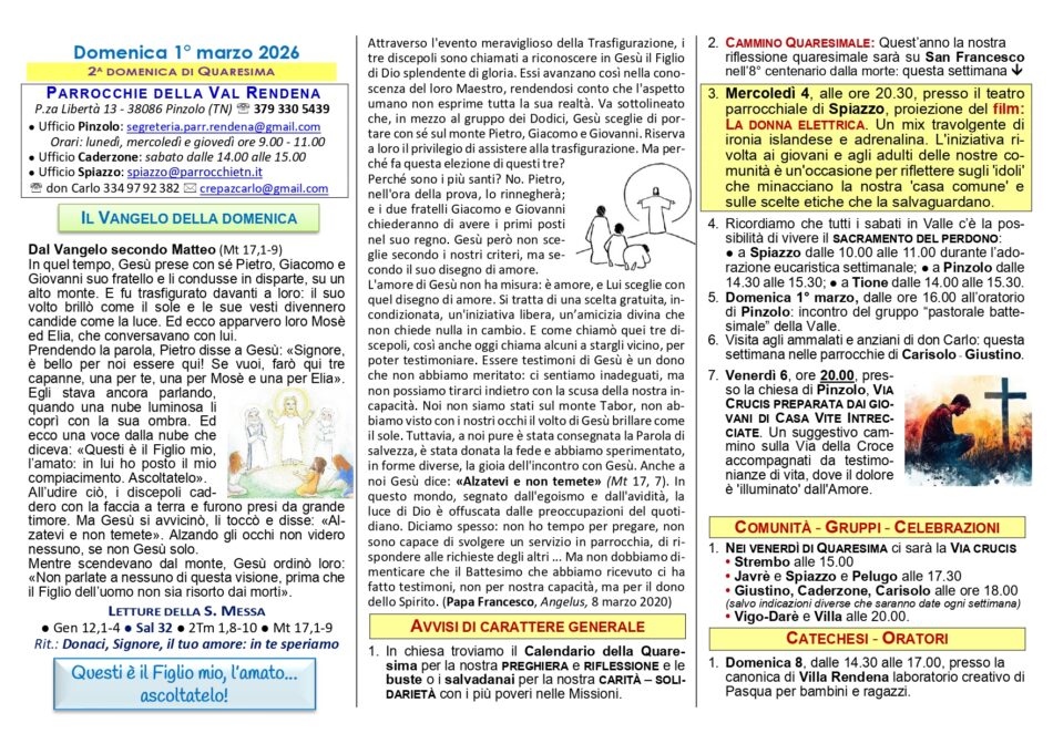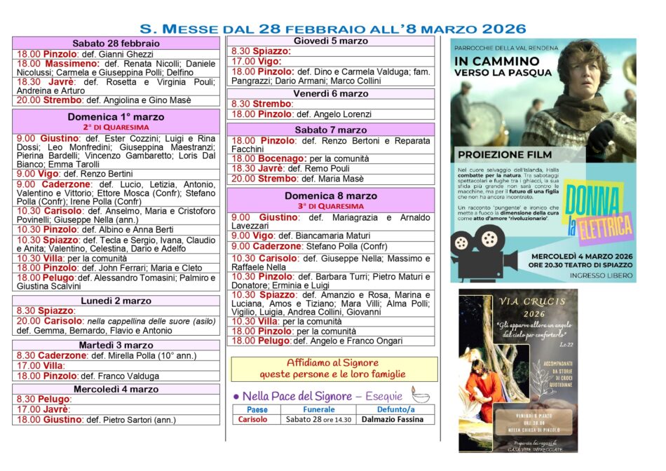 • Avvisi Parrocchiali: Settimana dal 1° all’8 marzo 2026
