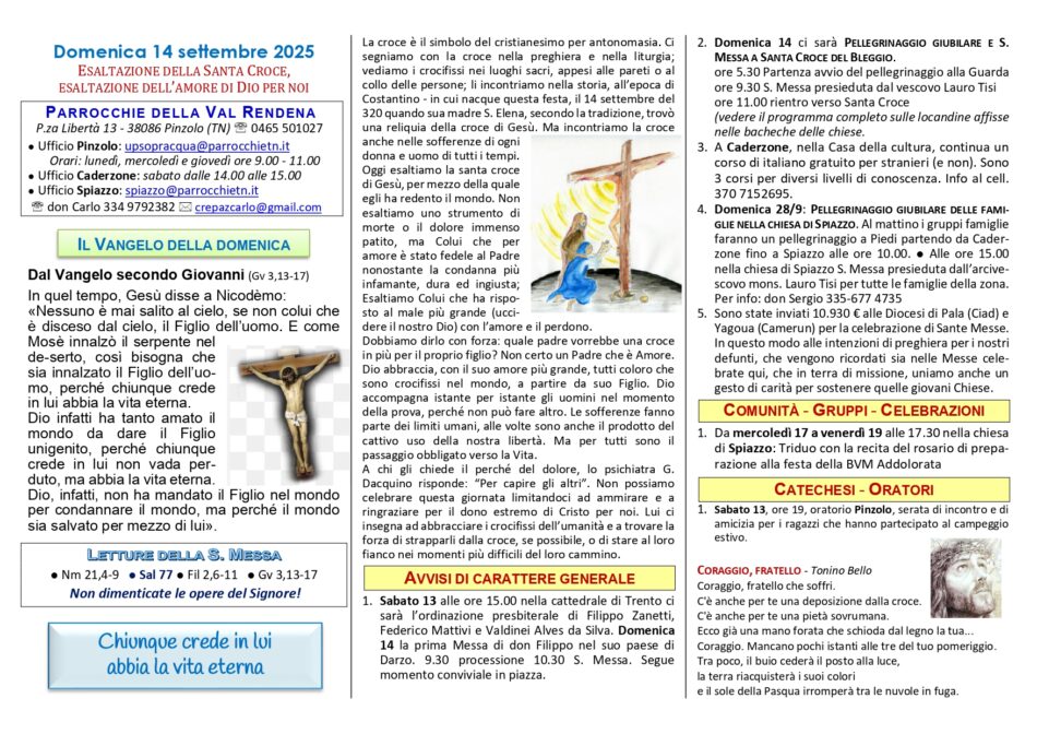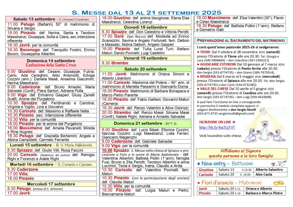 • Avvisi Parrocchiali: Settimana dal 14 al 21 settembre 2025