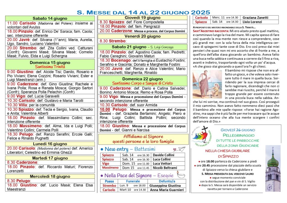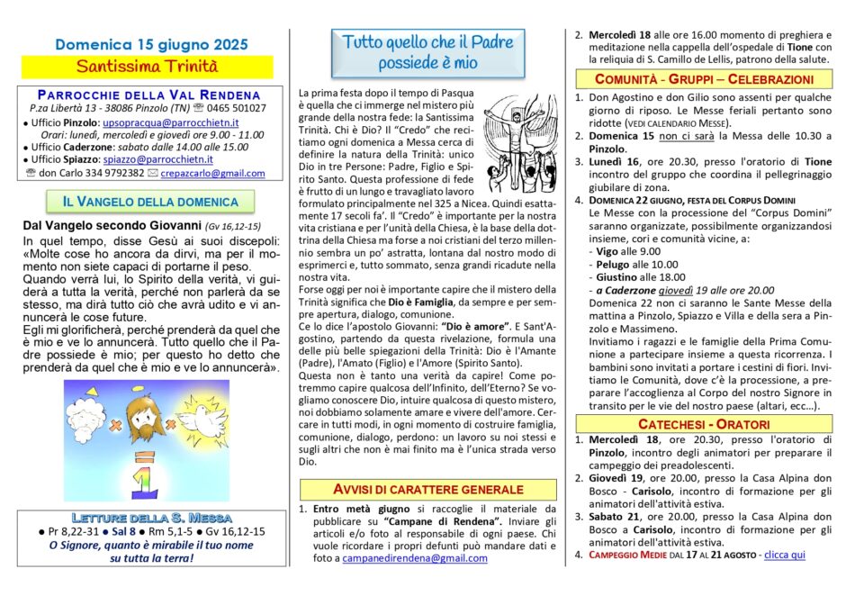 • Avvisi Parrocchiali: settimana dal 15 al 22 giugno 2025