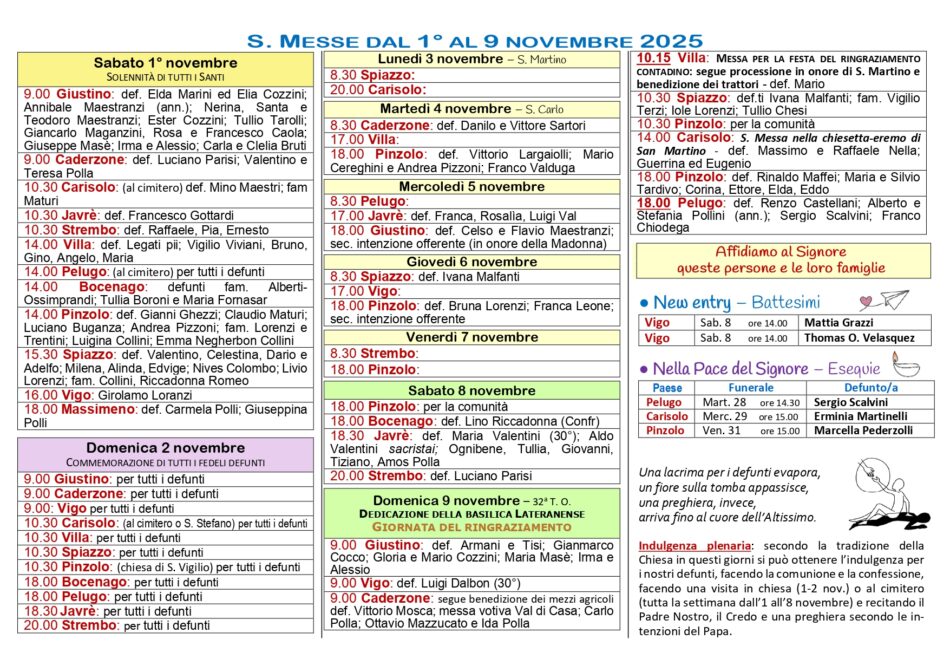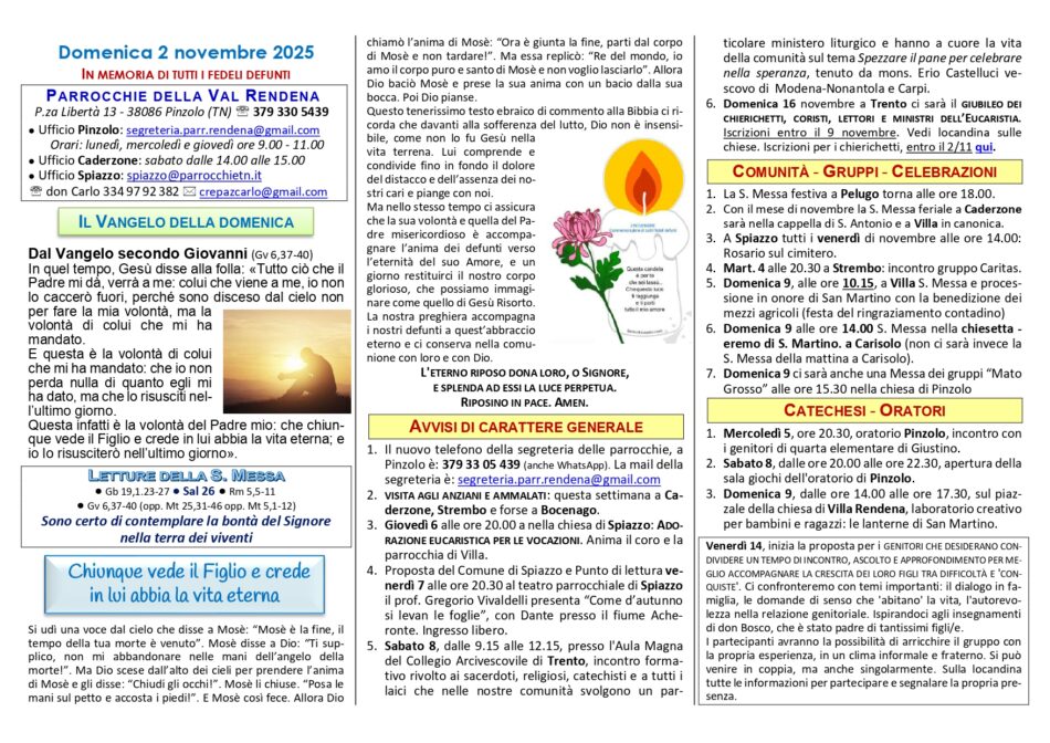 • Avvisi Parrocchiali: Settimana dal 2 al 9 novembre 2025