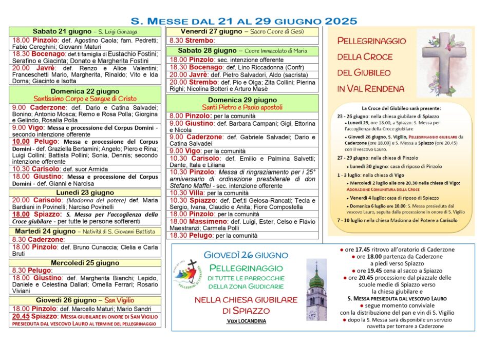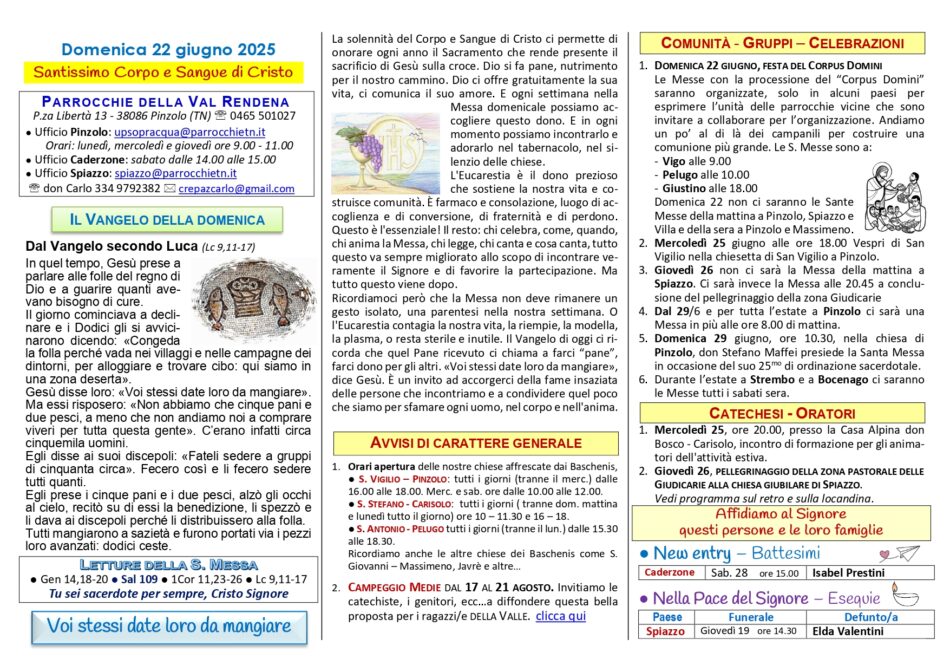 • Avvisi Parrocchiali: settimana dal 22 al 29 giugno 2025