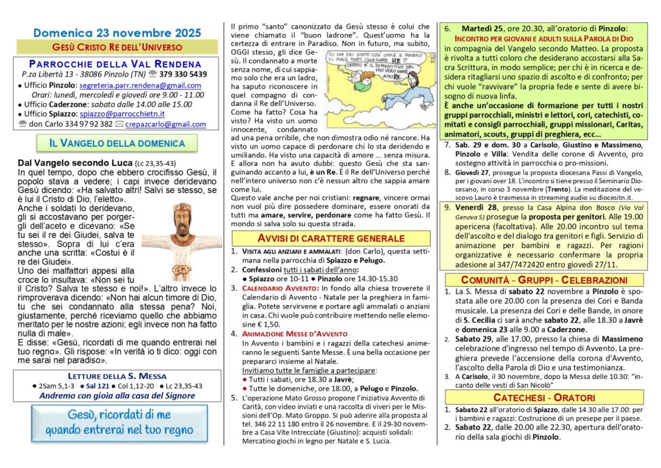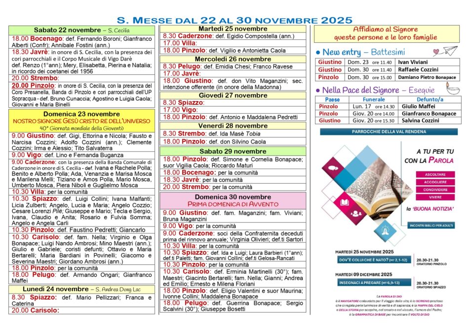 • Avvisi Parrocchiali: Settimana dal 23 al 30 novembre 2025