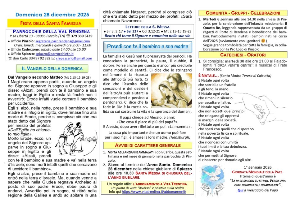 • Avvisi Parrocchiali: Settimana dal 28 dicembre al 4 gennaio