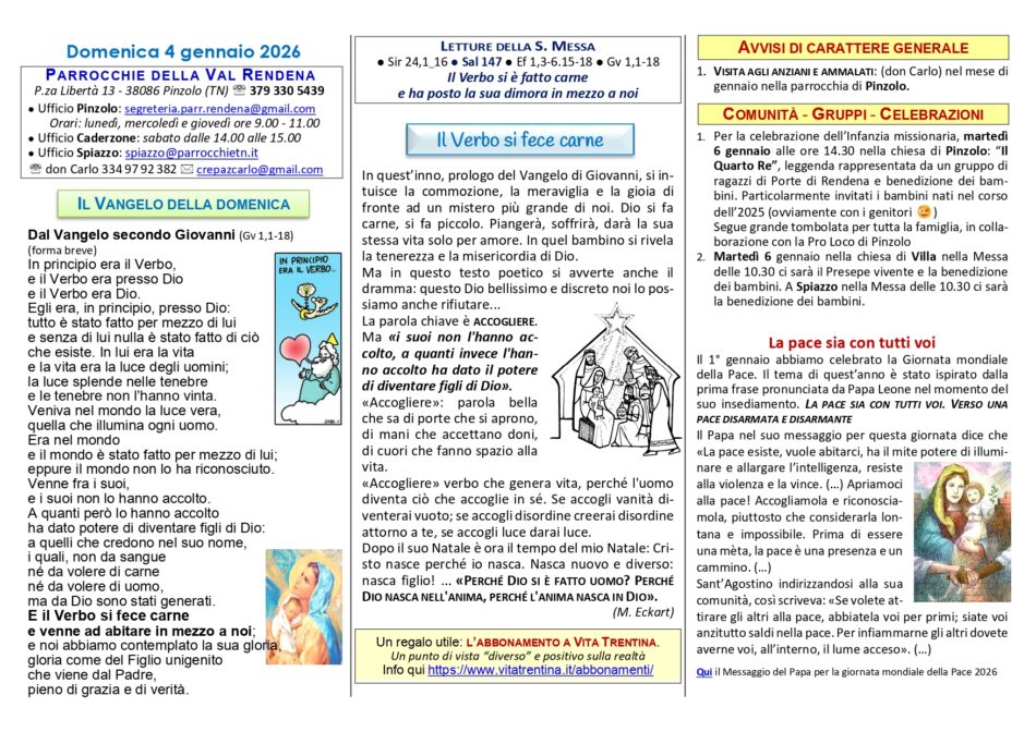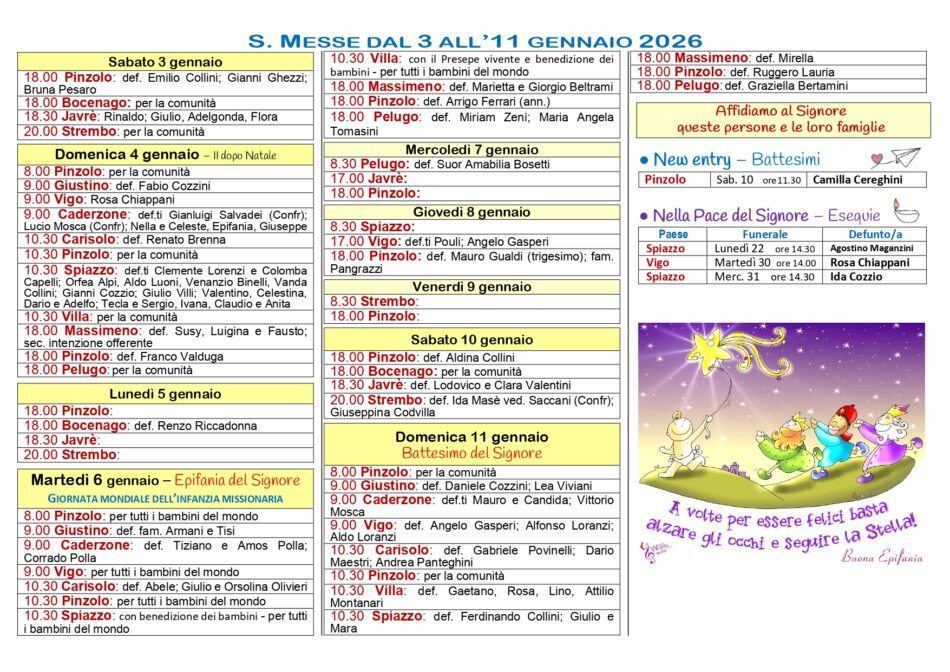 Avvisi Parrocchiali: Settimana dal 4 all’11 gennaio 2026