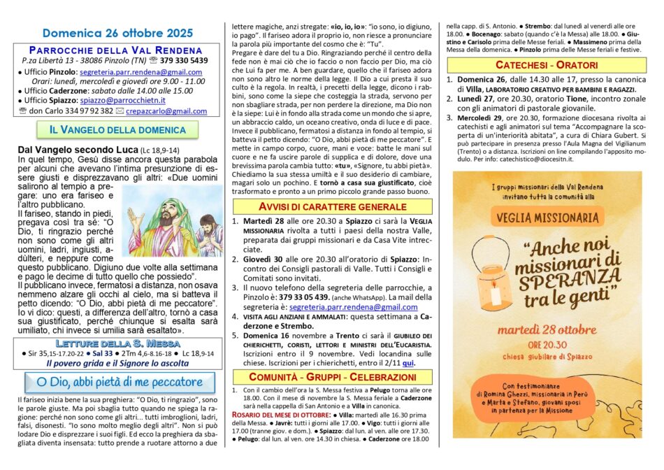 Avvisi Parrocchiali: Settimana del 26 ottobre a 2 novembre 2025