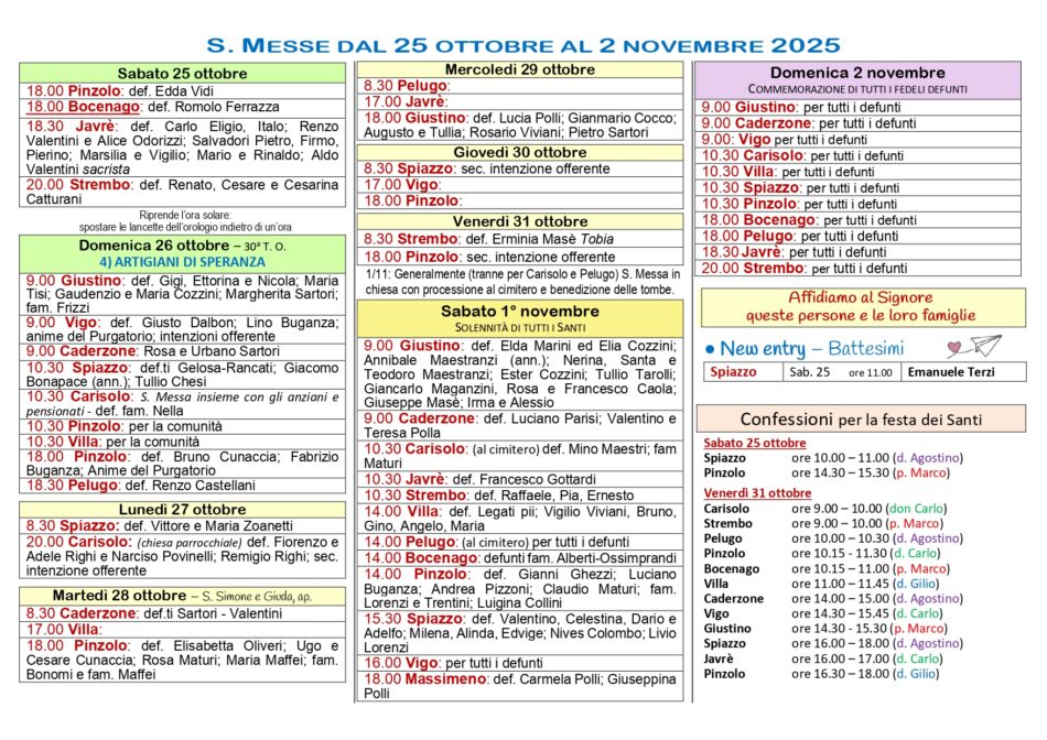 • Avvisi Parrocchiali: Settimana del 26 ottobre a 2 novembre 2025