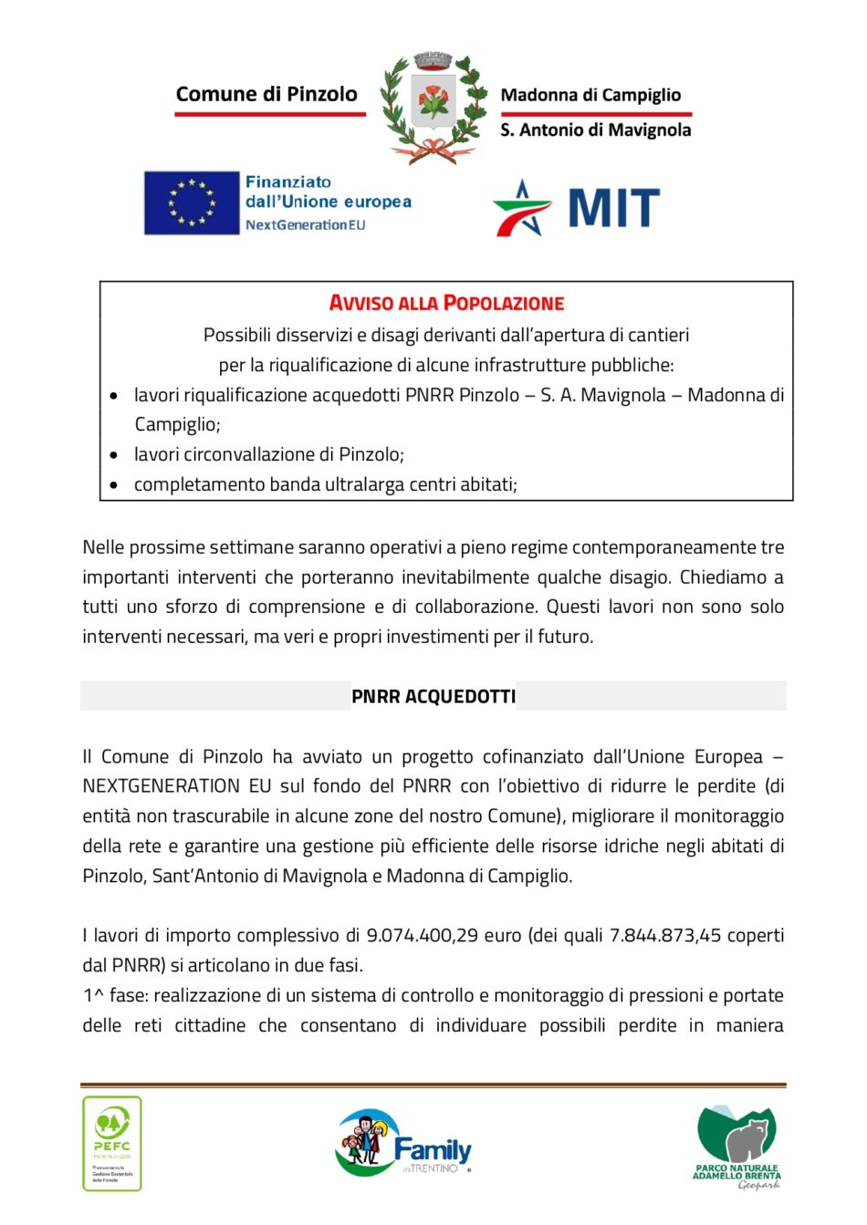 • AVVISO ALLA POPOLAZIONE: Possibili disservizi e disagi derivanti dall’apertura di cantieri per la riqualificazione di alcune infrastrutture pubbliche