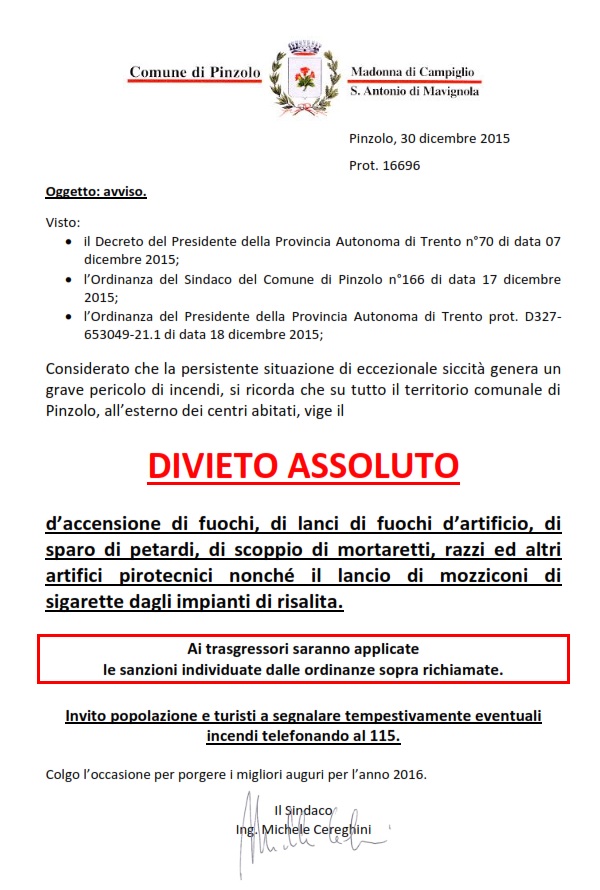 • Avviso: Divieto assoluto accensione fuochi d’artificio
