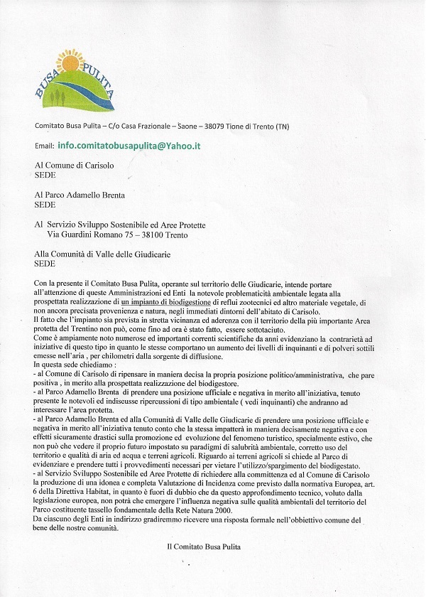 • Biodigestore Carisolo – Notevole problematicitÁ  ambientale