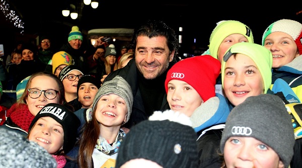 In piazza e sul palco è stato protagonista anche Alberto Tomba, l’ospite più atteso di questa 3Tre, a 30 anni dalla sua prima affermazione a Madonna di Campiglio. Un tuffo nelle immagini dei suoi successi, e sembra che il tempo non sia passato: le grida e gli applausi della folla parlano di tutto l’affetto che ancora esiste per un campione che ha segnato un’epoca.